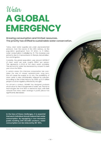 Growing consumption and limited resources. Oceans, ice caps, lakes, rivers, on average when a WC cistern