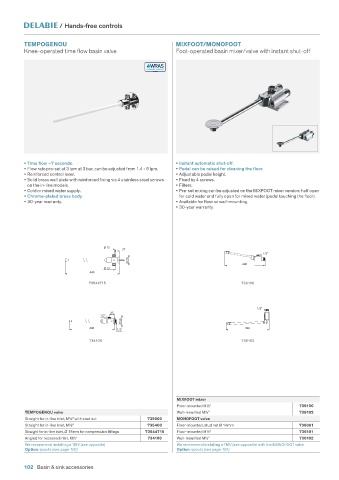 Knee-operated time flow basin valve Foot-operated basin mixer/valve with instant shut-off