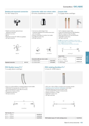 • Reinforced chrome-plated brass • Connectors with integral filter • Soft-tempered copper tails.