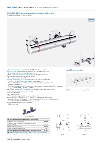 • Anti-scalding failsafe: immediate shut-off if cold water supply fails. Additional product