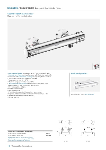 • Anti-scalding failsafe: immediate shut-off if cold water supply fails. Additional product