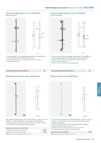 • Chrome-plated cut-to-size stainless steel shower riser rail Ø 22mm, • Chrome-plated cut-to-size stainless steel shower riser rail Ø 25mm,