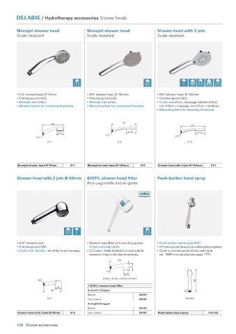 • M½" shower head. • Shower head filter with sterilising grade • Push-button hand spray M½".