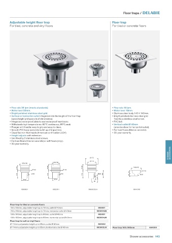 Ø 114mm, adjustable height up to 85mm, horizontal outlet Ø 43mm 683002UK Floor trap 140 x140mm 684000