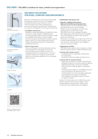 Residents in healthcare facilities and retirement homes   DELABIE offers mixers and taps with higher