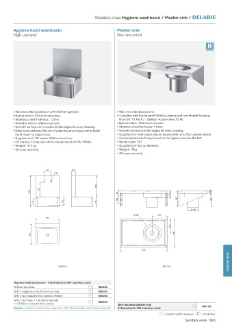 • Wall-mounted washbasin with 450mm upstand. • Wall-mounted plaster sink.
