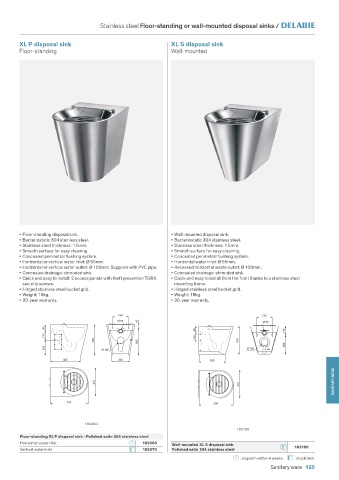 Stainless steel Floor-standing or wall-mounted disposal sinks /