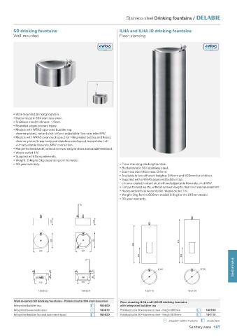 Wall-mounted SD drinking fountains - Polished satin 304 stainless steel Floor-standing ILHA and ILHA JR drinking fountains