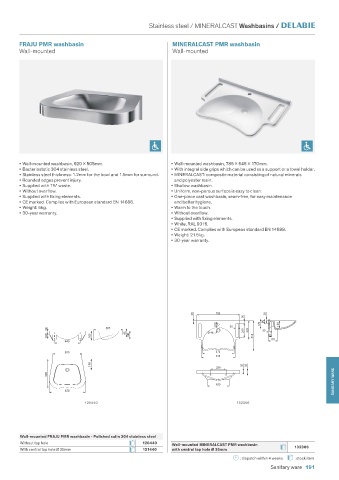 • Supplied with fixing elements. • One-piece cast washbasin, seam-free, for easy maintenance