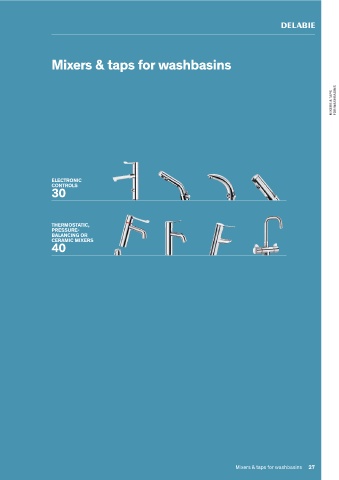 Mixers & taps for washbasins MIXERS & TAPS FOR WASHBASINS ELECTRONIC CONTROLS 30 THERMOSTATIC, PRESSURE BALANCING OR CERAMIC MIXERS 40 Mixers & taps for washbasins 27