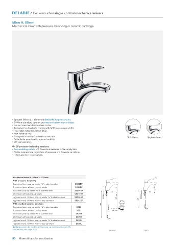 • Fixing reinforced by 2 stainless steel rods. Solid lever Hygiene lever