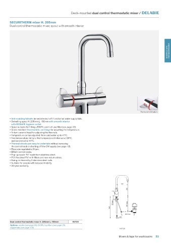 • Scale-resistant thermostatic cartridge for adjusting the temperature.
