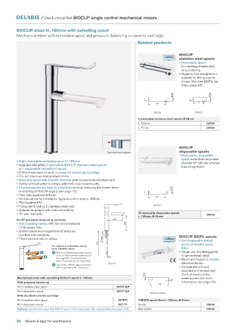 • Supplied with either 2 removable BIOCLIP stainless steel spouts flow straightener.