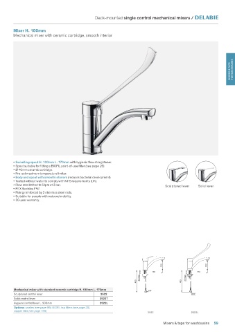• Swivelling spout H. 100mm L. 170mm with hygienic flow straightener.