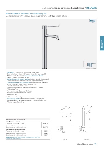 • High spout H. 305mm with hygienic flow straightener.