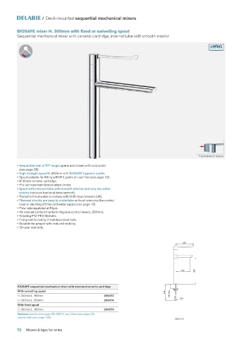 • High straight spout H. 300mm with BIOSAFE hygienic outlet.