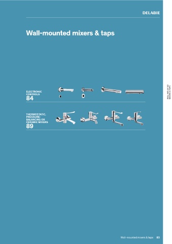 Wall-mounted mixers & taps ELECTRONIC WALL-MOUNTED MIXERS & TAPS CONTROLS 84 THERMOSTATIC, PRESSURE BALANCING OR CERAMIC MIXERS 89 Wall-mounted mixers & taps 83