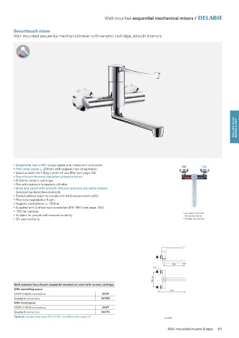 Wall-mounted Securitouch sequential mechanical mixer with ceramic cartridge