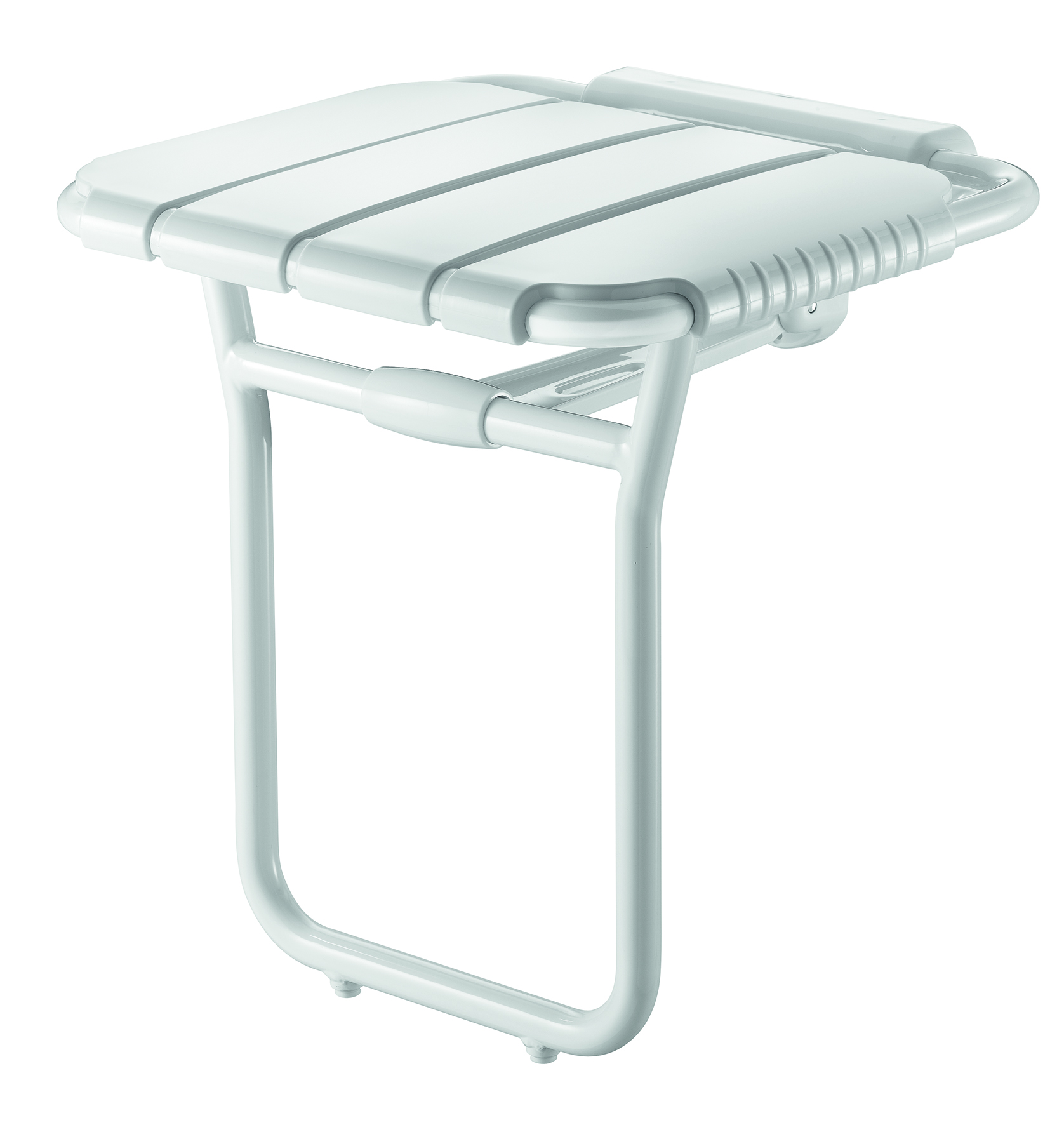 Wall-mounted lift-up shower seat with 30-year warranty. CE marked.