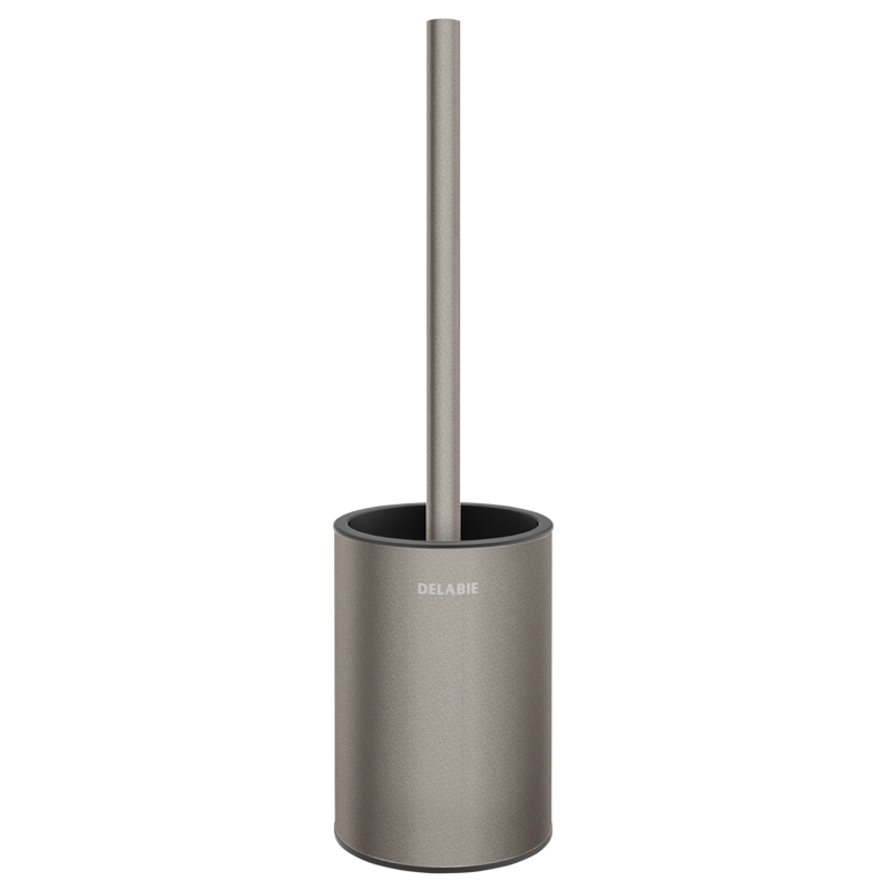 Wall-mounted robust toilet brush set with anti-theft lock for fixing.