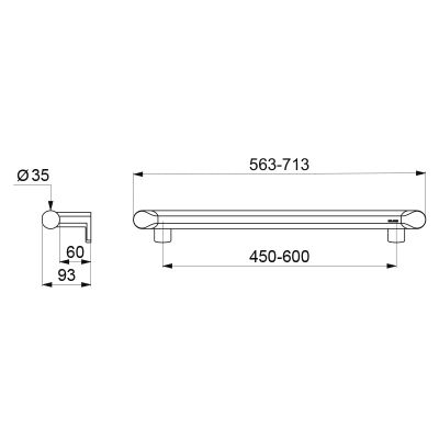 60mm gap between the bar and the wall: minimal space prevents the forearm passing between the bar and the wall, reducing the risk of fracture in case of loss of balance.