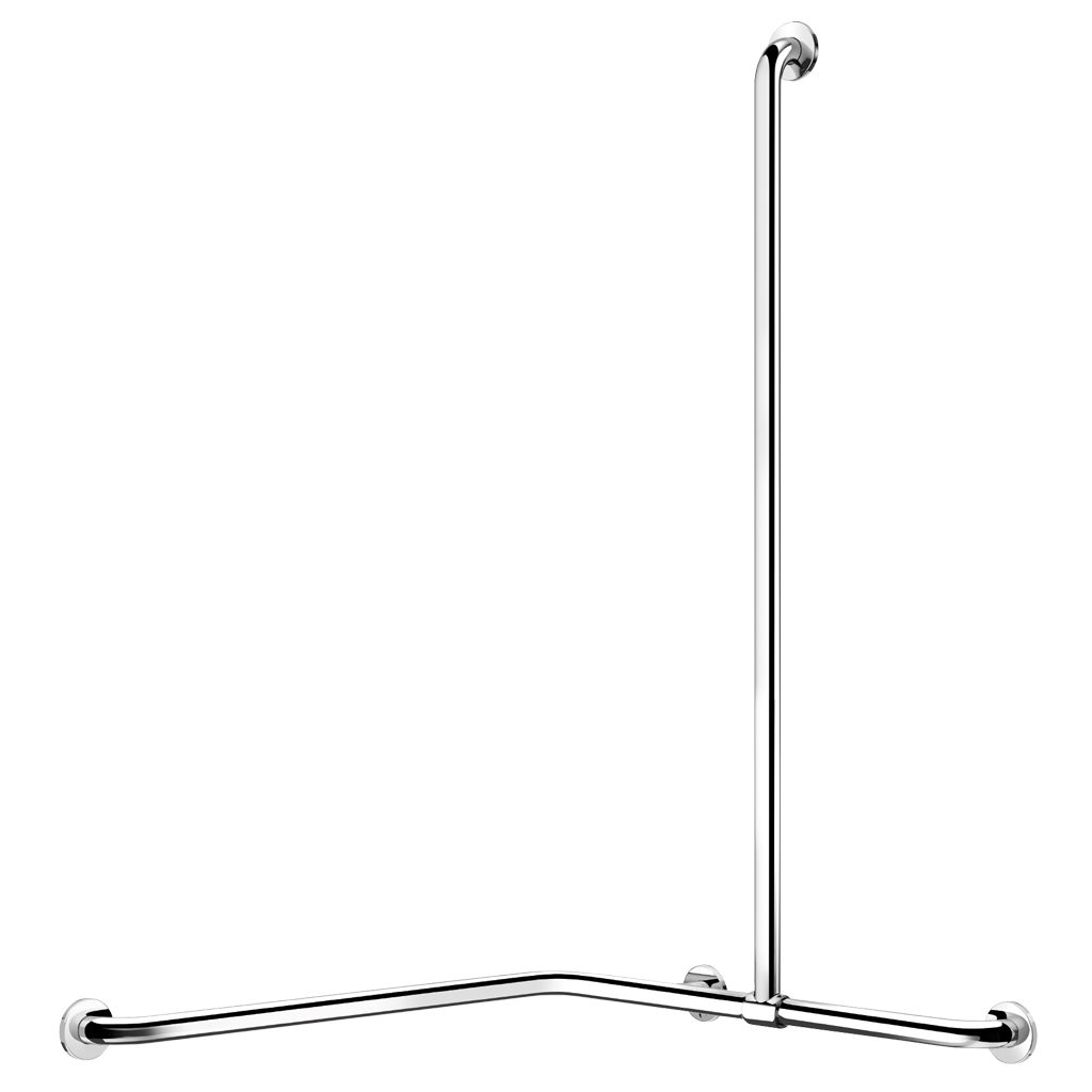 Corner grab bar with sliding vertical bar, bright stainless steel