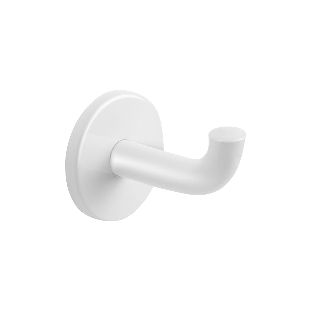 White powder-coated stainless steel coat hook, long model