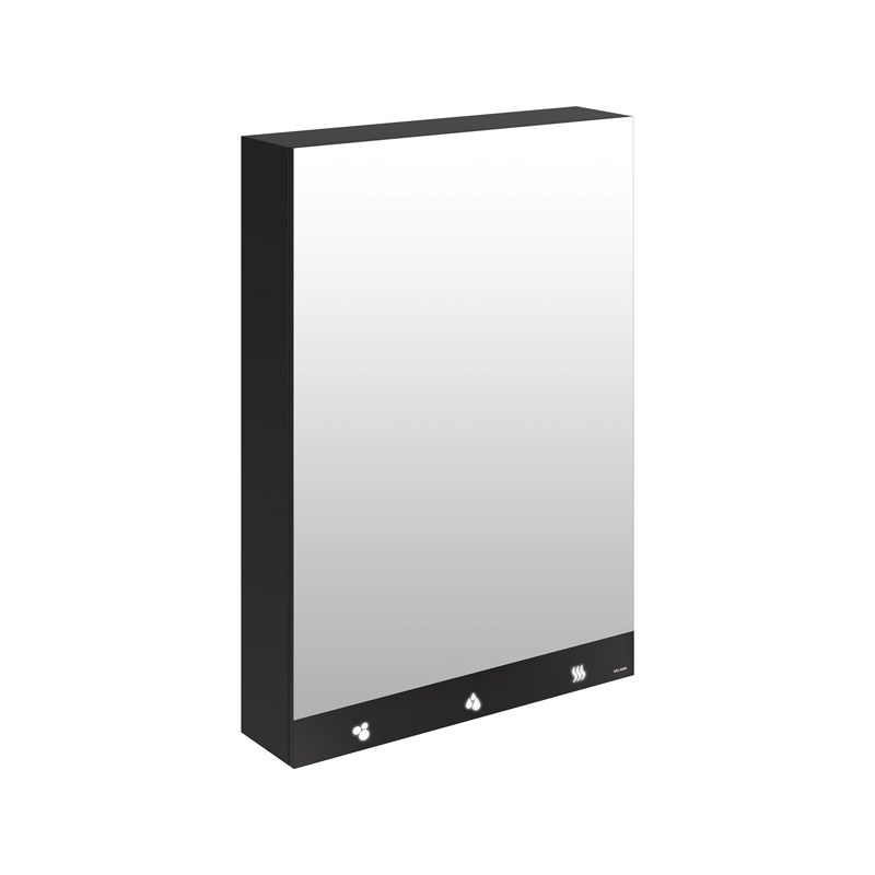 4mm thick glass mirror and black glass strip with illuminated pictograms.