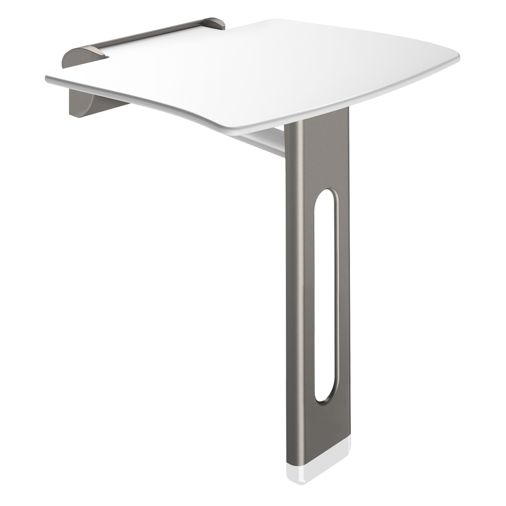 Wall-mounted lift-up shower seat with 30-year warranty. CE marked.