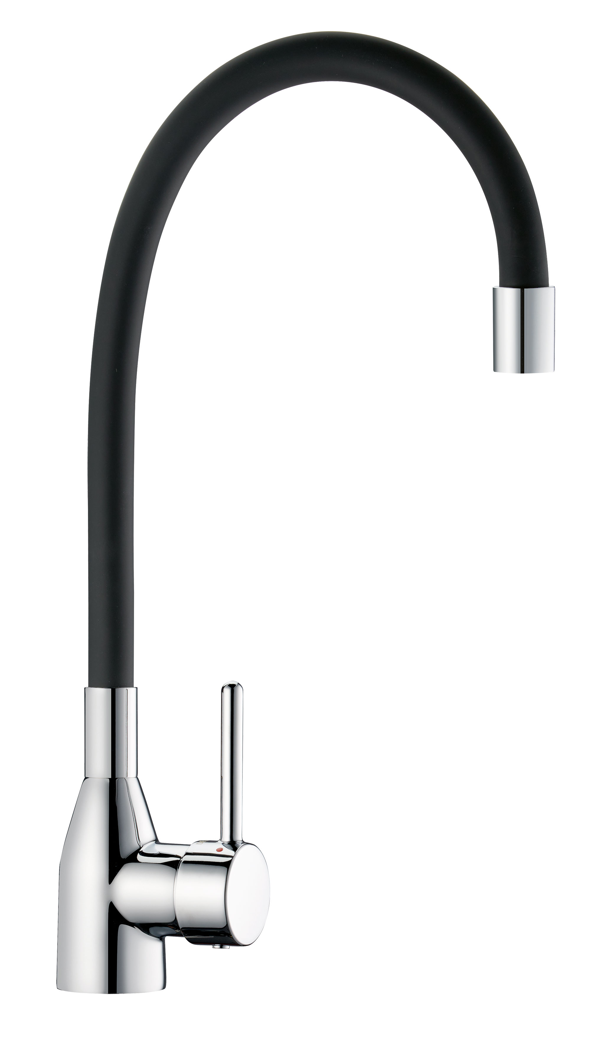 Mechanical mixer with flexible swivelling hand spray with smooth interior.