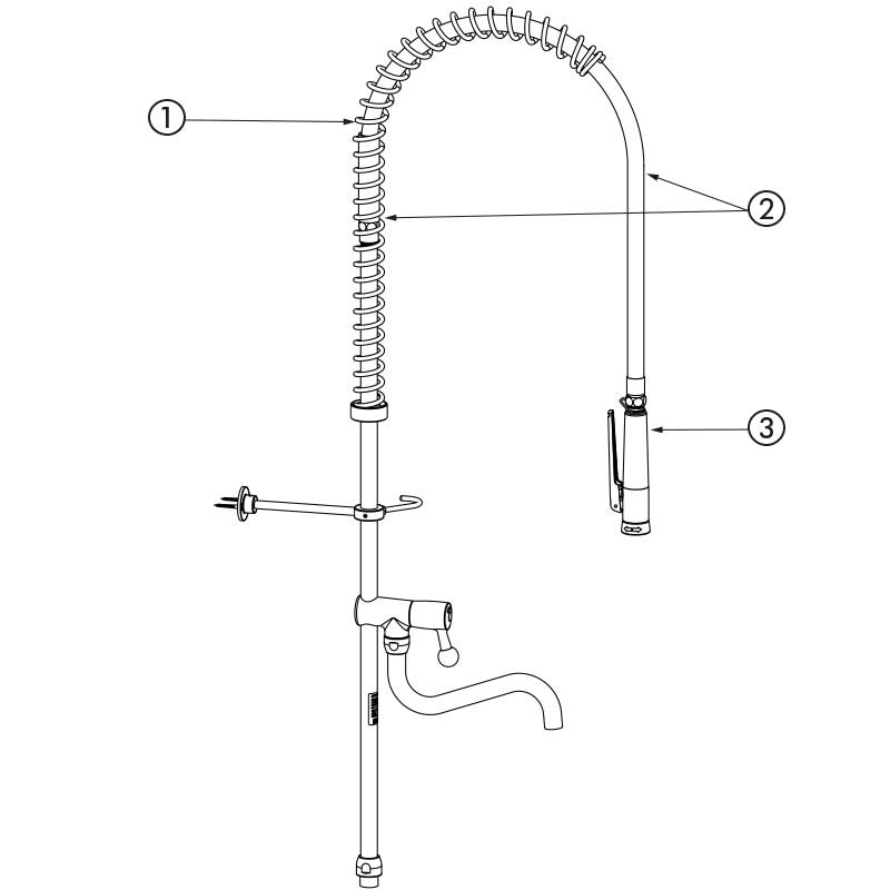 This pre-rinse set, with no water control valve, comprises spare parts for repairing pre-rinse sets.