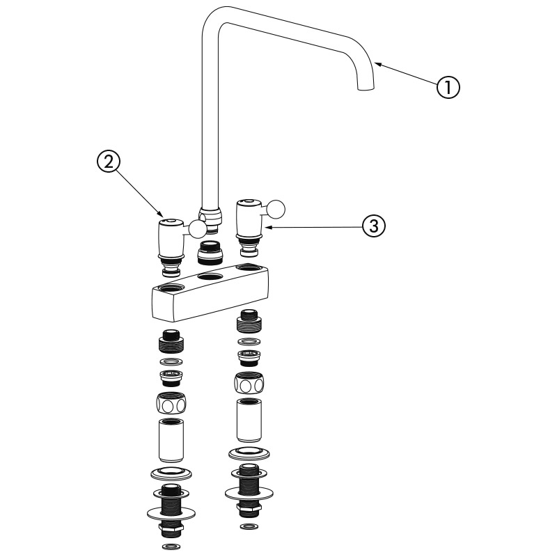 Ref. 5603Twin hole mixer, M3/4" with 150mm centres on pillar mounts for plunge sinks.