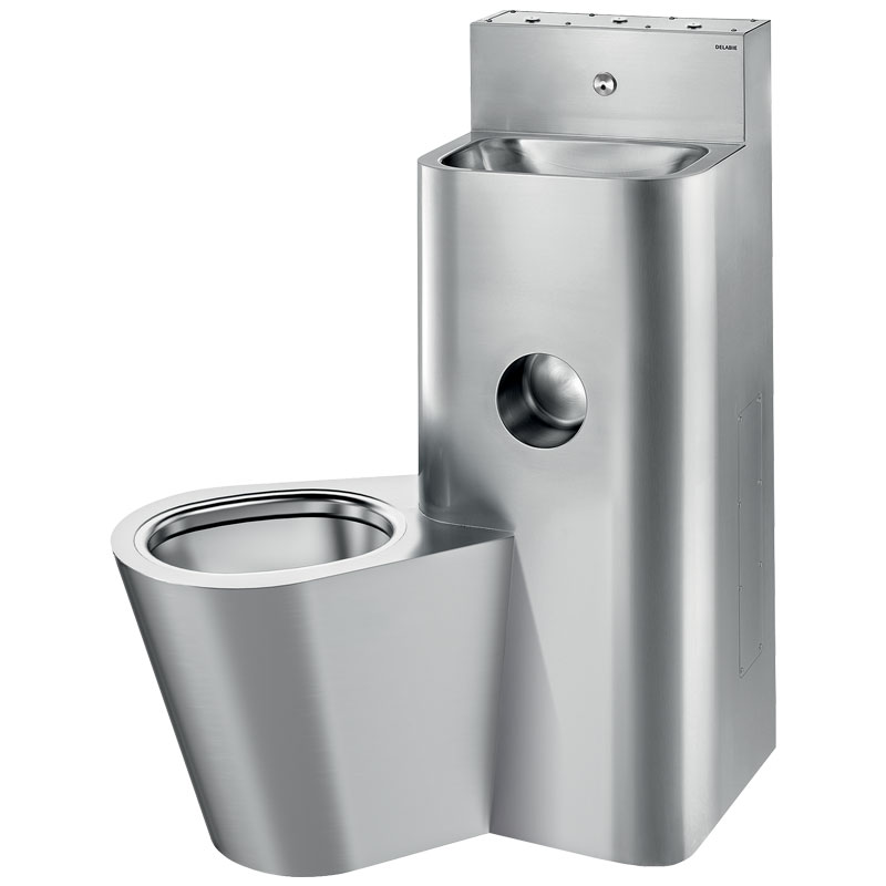 WC pan is completely welded to washbasin, no screws: makes cleaning easier and prevents concealment of objects.