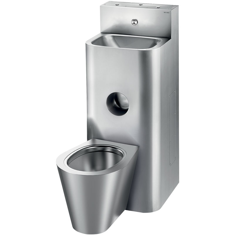 WC pan is completely welded to washbasin, no screws: makes cleaning easier and prevents concealment of objects.