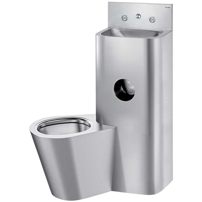 Polished satin 304 stainless steel, cross wall - floor mount WC on LHS