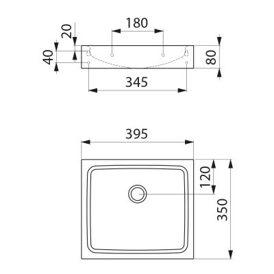 Ref. 120830BKWall-mounted hand washbasin, 395 x 350mm.