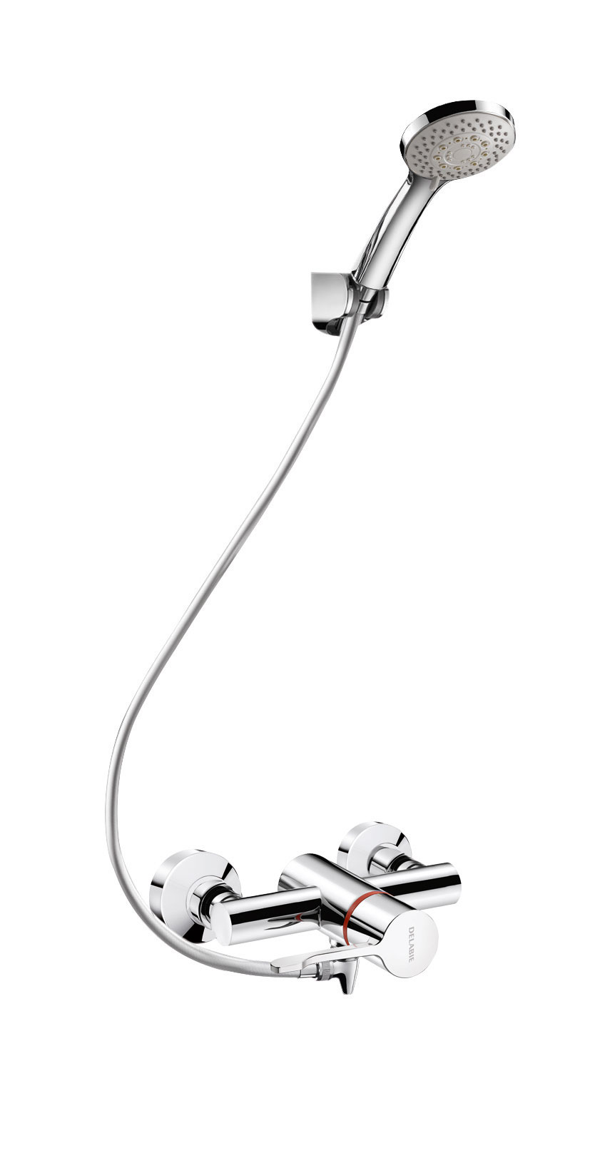 Sequential mixer with anti-scalding failsafe: shuts off automatically if cold or hot water supply fails.