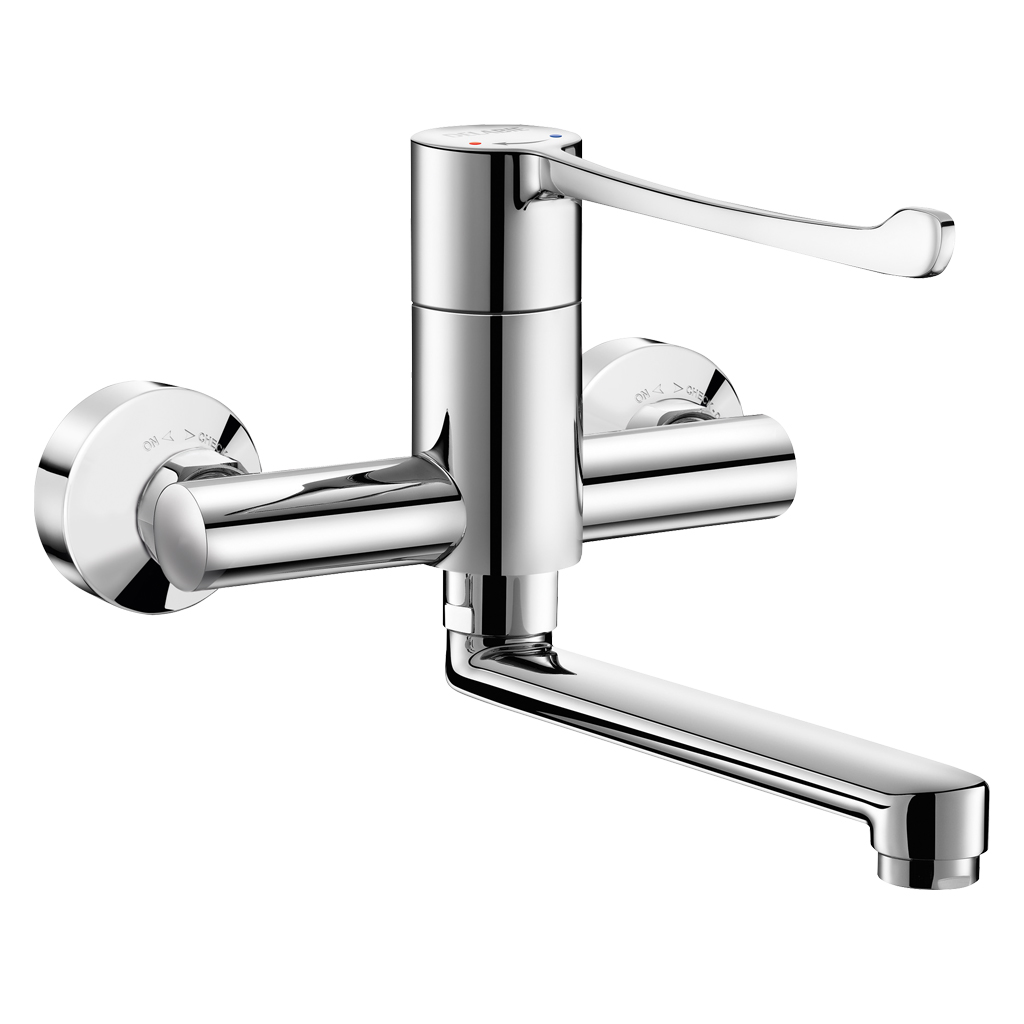 Ref. 2436Wall-mounted sequential mechanical basin mixer.