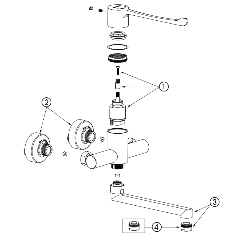 Ref. 2437Wall-mounted sequential mechanical basin mixer.
