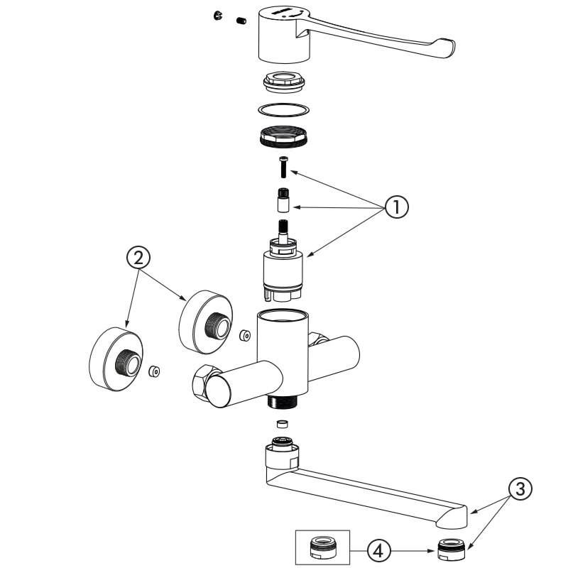 Ref. 2437SWall-mounted sequential mechanical basin mixer.