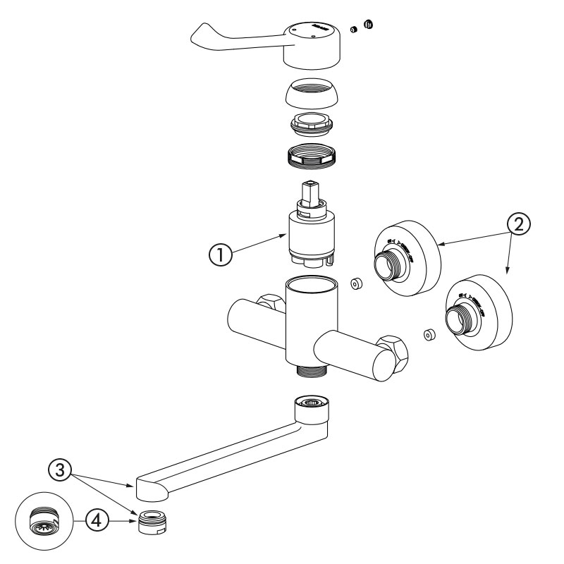 | 2445LEP | EP cartridge - Spout L. 200mm - Hygiene lever - Offset STOP/CHECK unions | ||