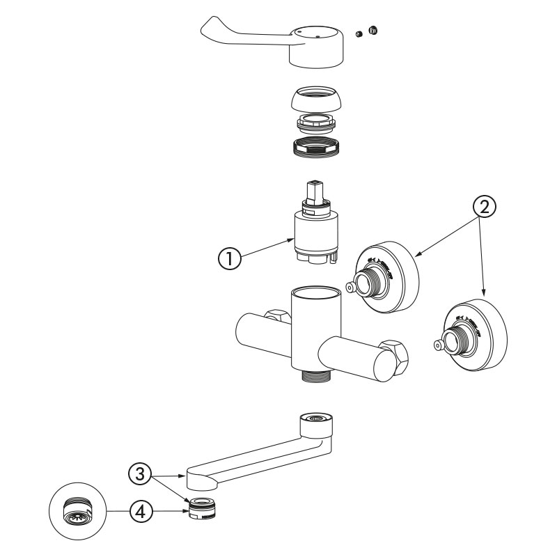 | 2445LEP | EP cartridge - Spout L. 200mm - Hygiene lever - Offset STOP/CHECK unions | ||