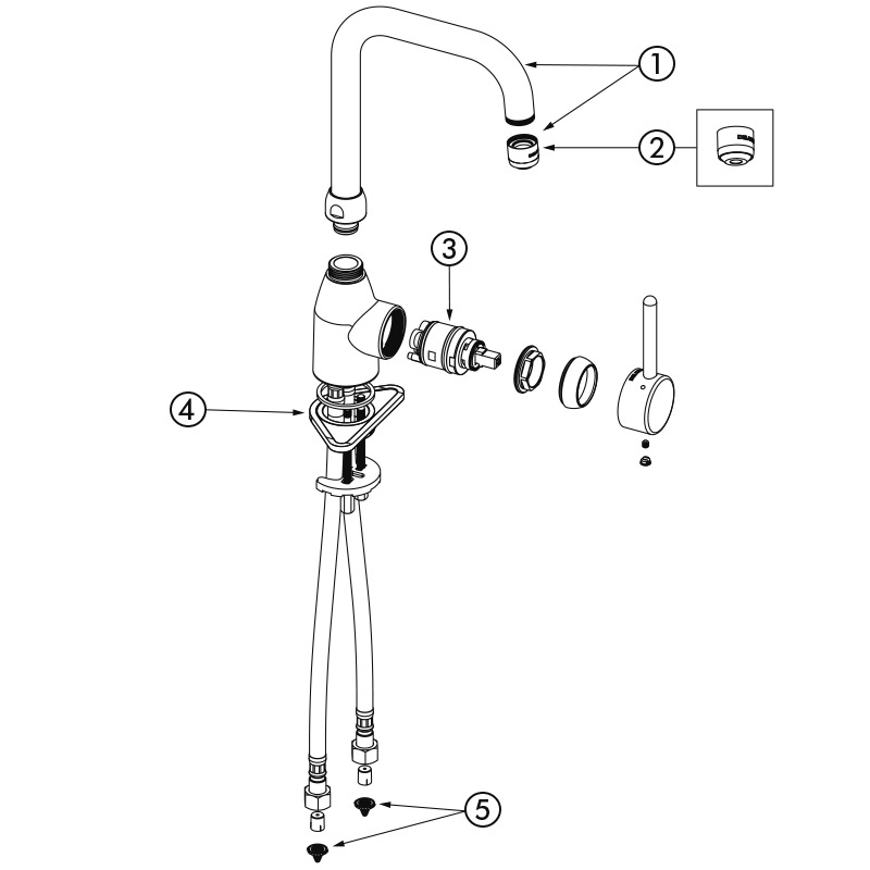 Single hole mechanical mixer with swivelling spout H. 195mm L. 150mm fitted with a BIOSAFE hygienic outlet.