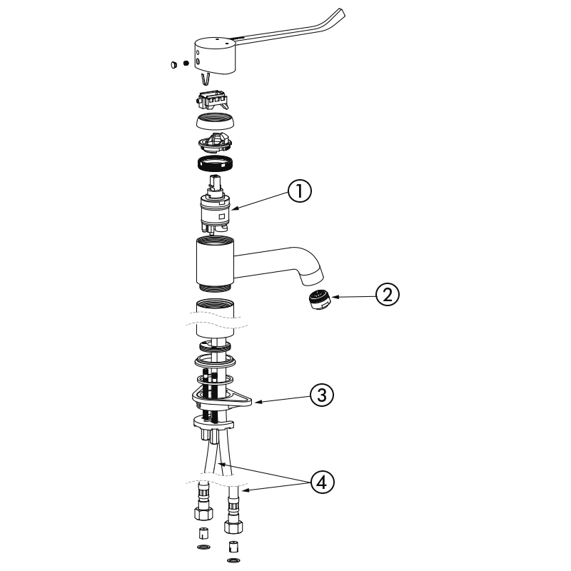 Single hole, single control tall mixer with ceramic cartridge