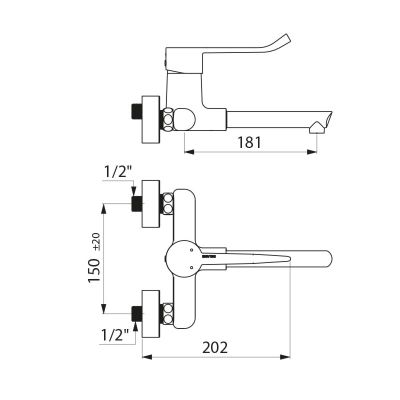 No manual contact thanks to Hygiene control lever L. 150mm.