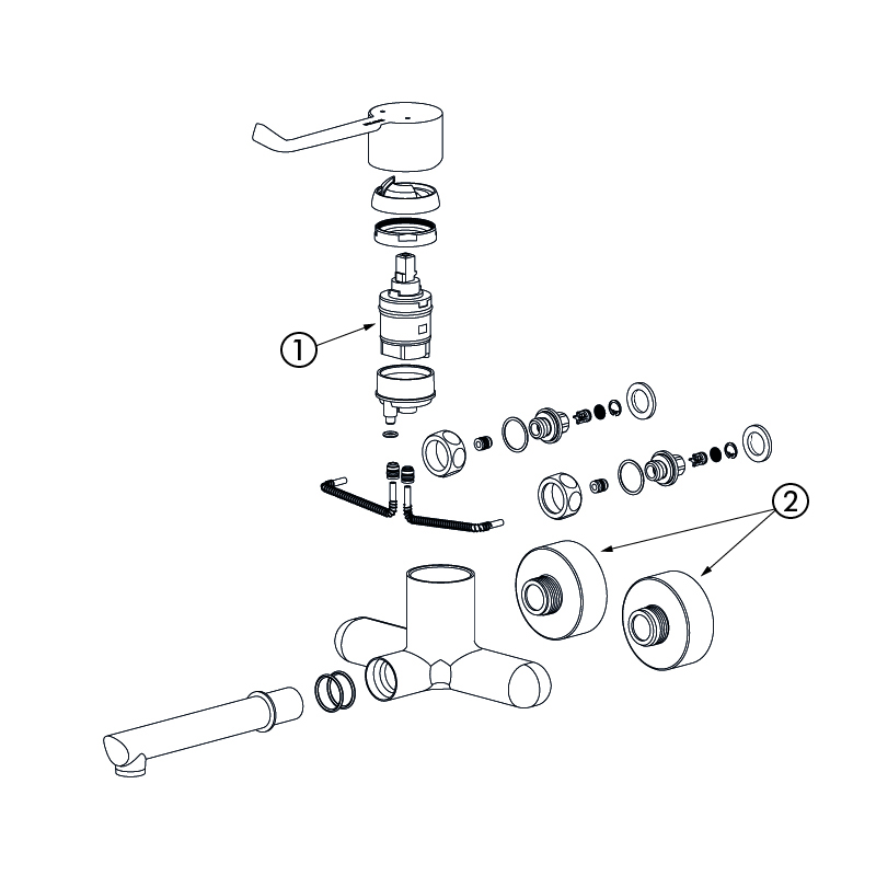 Ø 35mm ceramic cartridge with pressure-balancing and pre-set maximum temperature limiter.