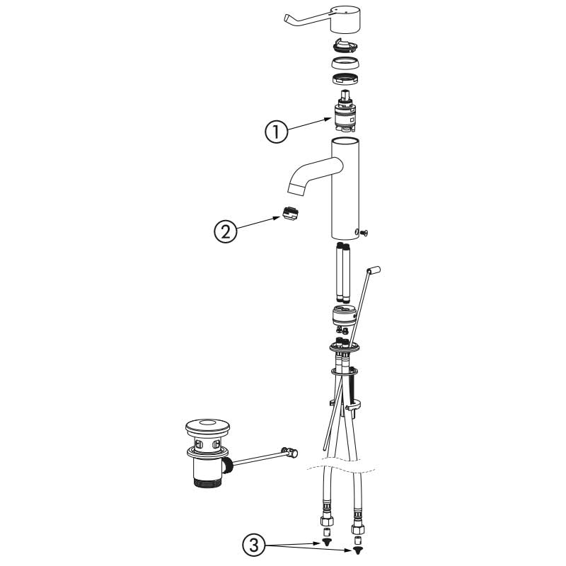 | 28201T | Std cartridge - solid lever - pop-up waste - no stopcocks - flexibles |