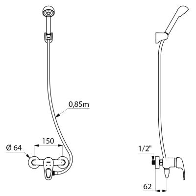 Ref. 2239EPSHYGShower kit with single control mechanical mixer.