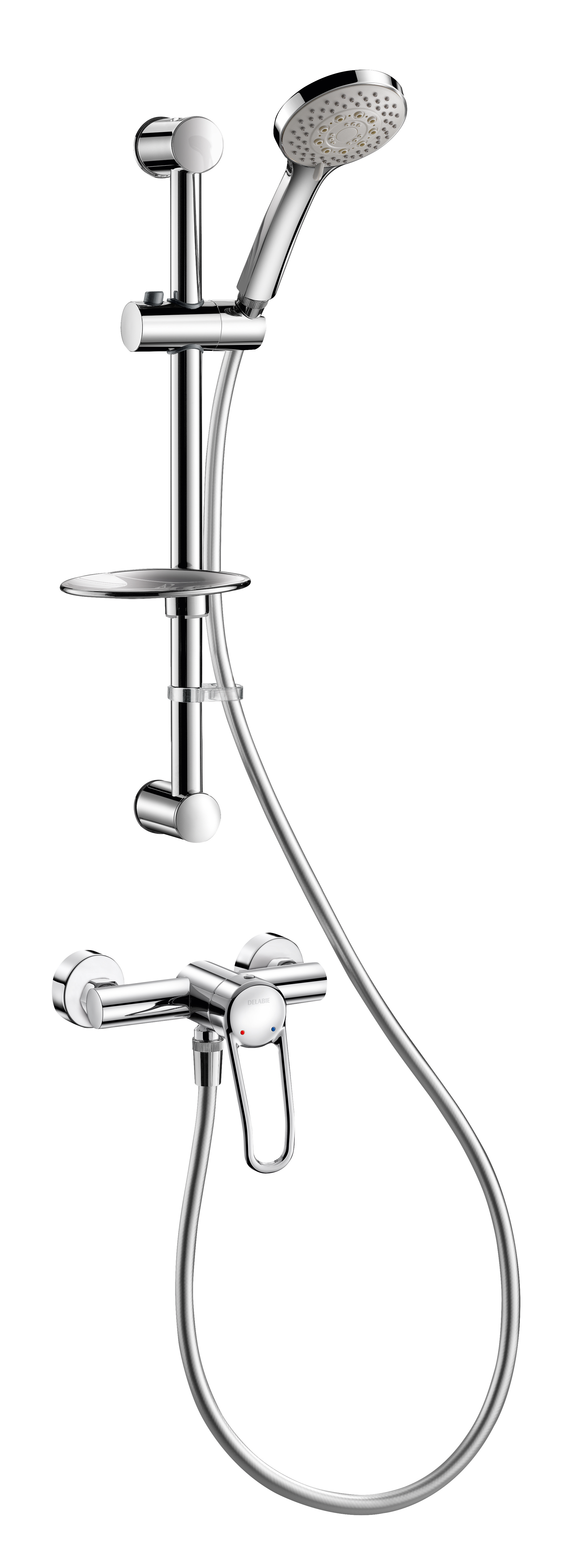 • Wall-mounted single control shower mixer with Securitouch thermal insulation to prevent burns.