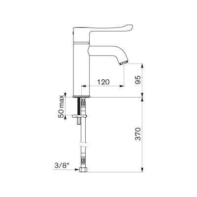 Single hole mixer with curved spout H. 95mm L. 120mm fitted with a hygienic flow straightener with no impurity retention and thermal shock-resistant.